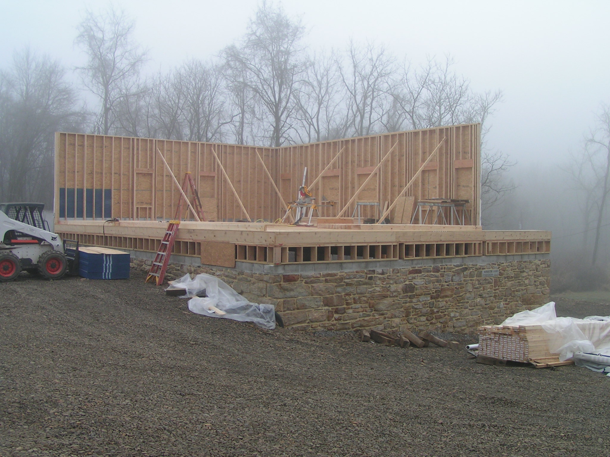 An operating barn was on the site until the roof collapsed from snow load. Debris was cleared away from the original foundation in 2006.